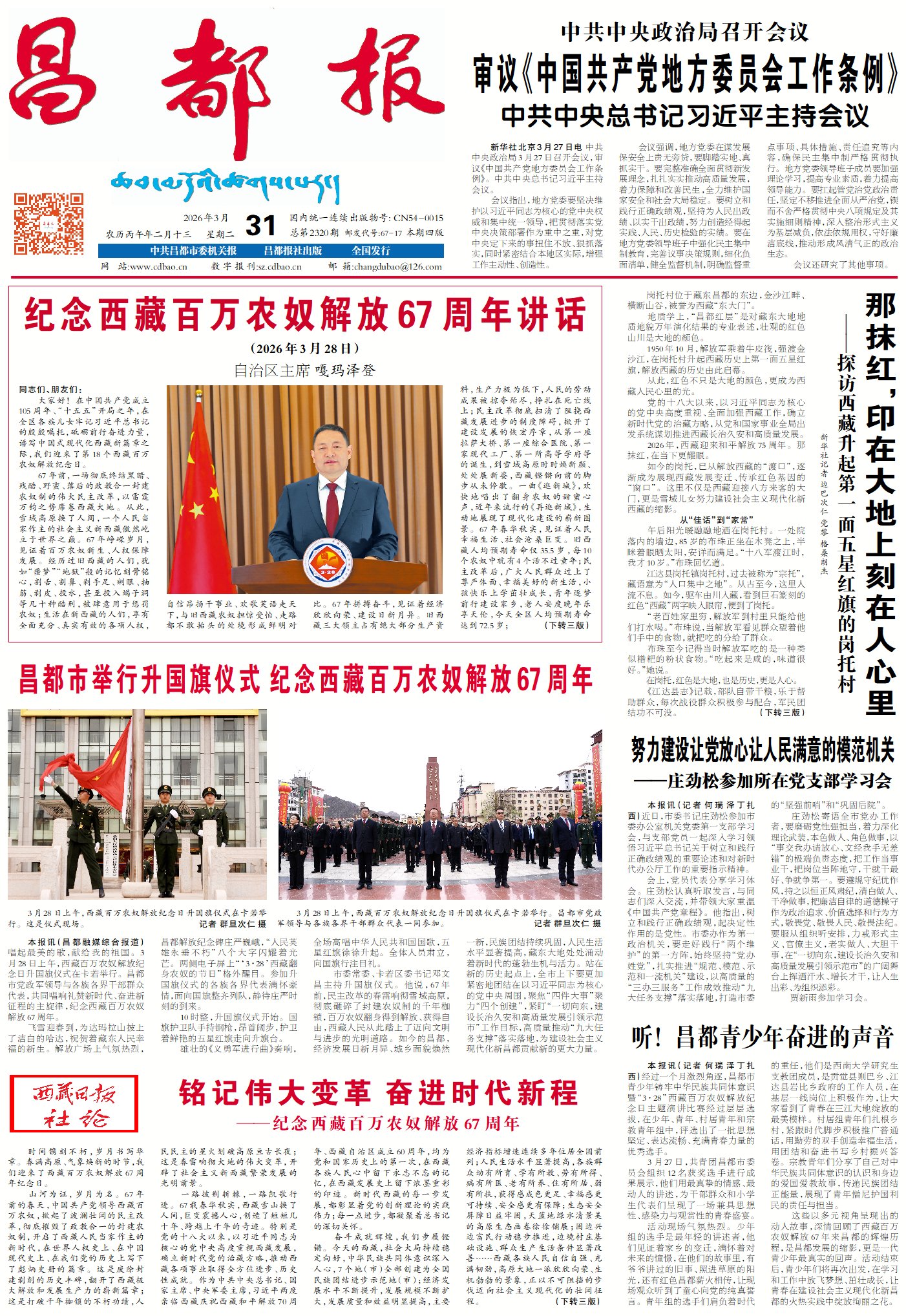 2026年3月22日是第三十四届“世界水日”,3月22日至28日为第三十九届“中国水周”。当日,昌都市丁青县、类乌齐县紧扣“水与性别”“国家水网 世纪画卷”主题,同步开展系列宣传活动,线上线下联动发力,营造全民爱水、节水、护水的良好氛围。