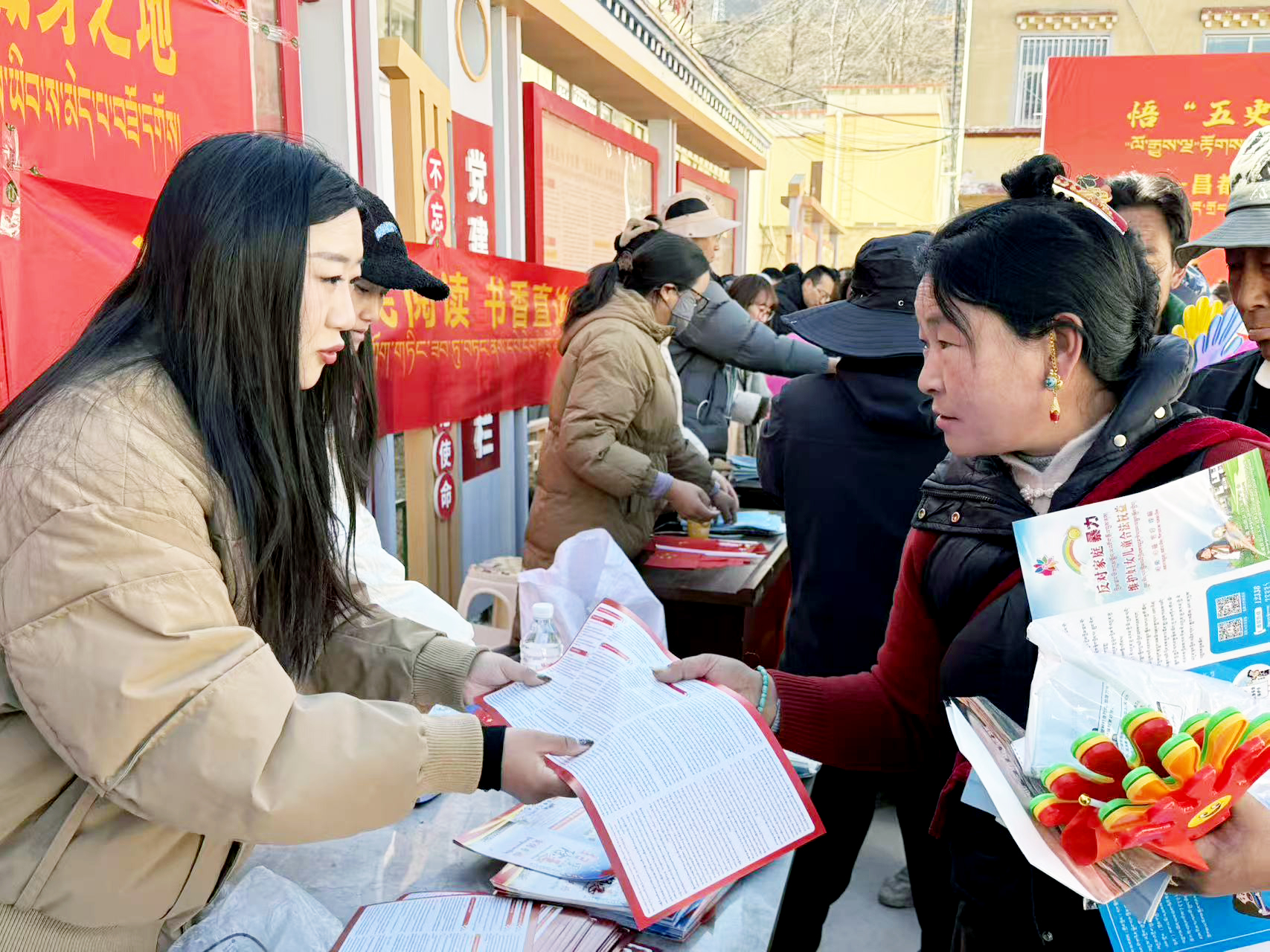 工作人员向群众宣传政策知识并发放宣传手册。 市融媒体中心记者 陈娜 摄 本报讯(记者 陈娜 向巴曲增 梁湘楠)11月18日,以“悟‘五史’铸魂守初心 送服务下乡惠民生”为主题的昌都市2025年文化科技卫生“三下乡”集中示范活动,在察雅县王卡乡王吉村热闹启幕。活动由市委宣传部主办,市委统战部、市科技局、市卫健委等10家单位联合承办,察雅县委宣传部协办,将政策宣讲、便民服务与文化盛宴送到群众“家门口”。