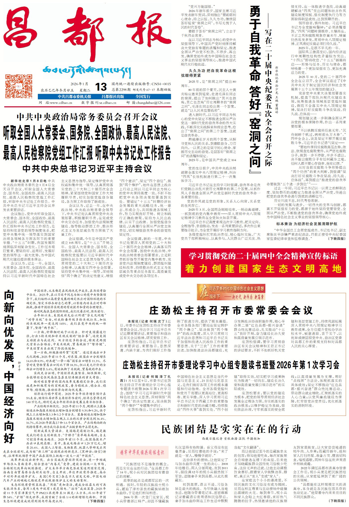 12月11日,中国共产党昌都市第二届委员会第十五次全体会议在卡若举行。 全会由市委常委会主持。市委书记庄劲松讲话。 全会深入学习贯彻党的二十届四中全会和自治区党委十届九次全会精神,听取并讨论了市委常委会工作报告,审议通过了《中共昌都市委员会关于制定国民经济和社会发展第十五个五年规划的建议》《中国共产党昌都市第二届委员会第十五次全体会议公报》,讨论了2025年市委常委会抓党的建设工作情况报告。庄劲松就《建议(讨论稿)》向全会作说明。