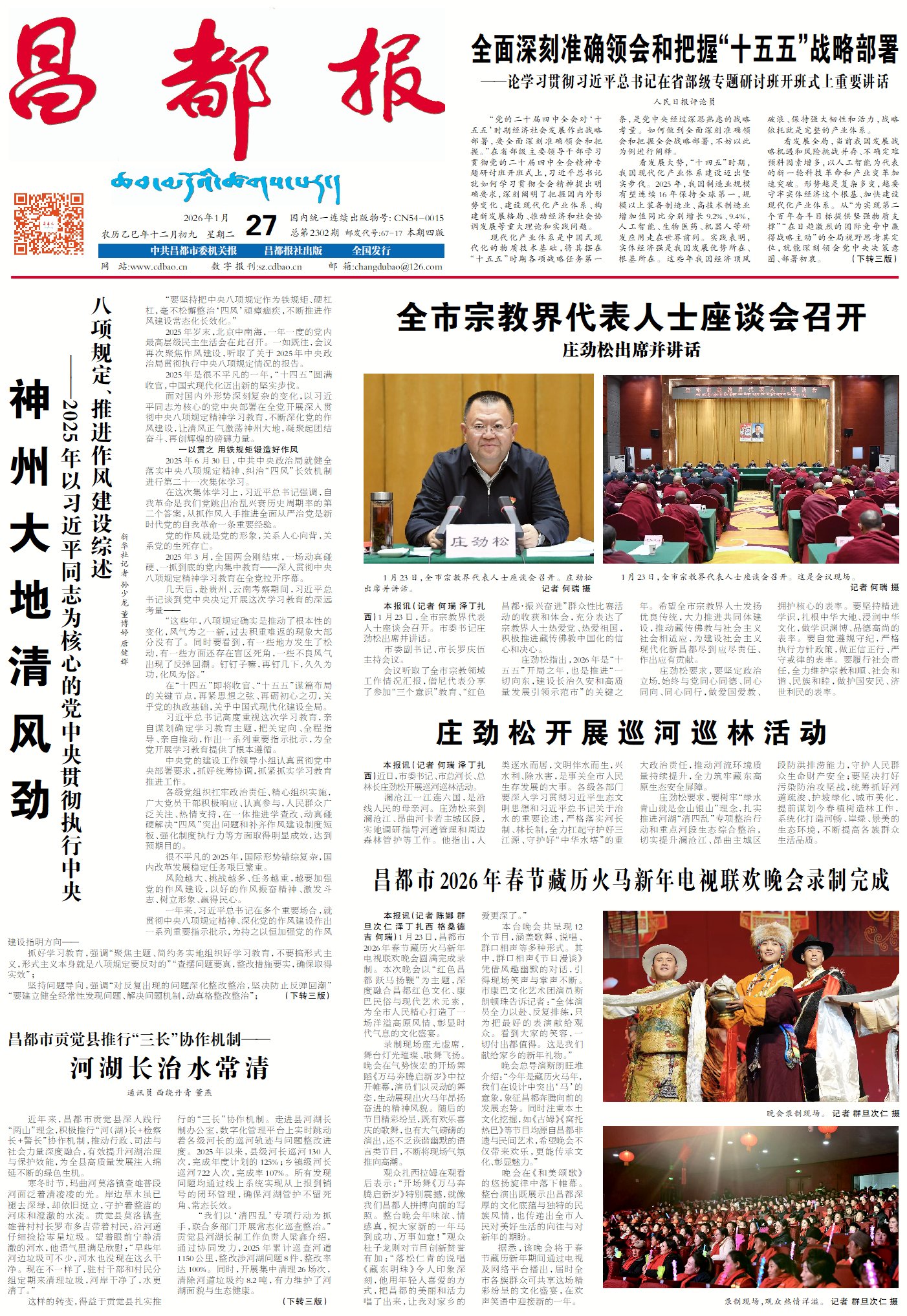 庄劲松指出,2026年是“十五五”开局之年,也是推进“一切向东,建设长治久安和高质量发展引领示范市”的关键之年。希望全市宗教界人士发扬优良传统,大力推进共同体建设,推动藏传佛教与社会主义社会相适应,为建设社会主义现代化新昌都尽到应尽责任、作出应有贡献。
